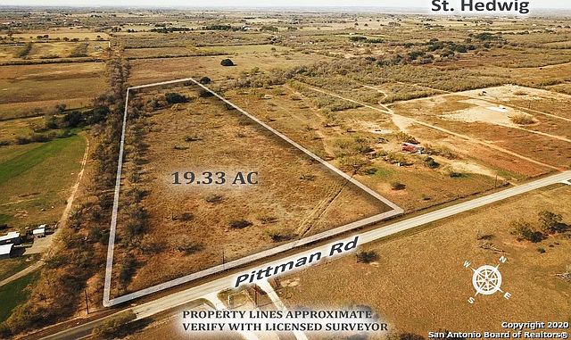 Large open 19+ acre home site, part of multiple private lots within City of St Hedwig with utilities at street, continually fenced, zoned for residential and agricultural, neighboring horses roam pasture. Beautiful level home site with a dry creek towards the rear. Has Range Native Pasture Land tax status with 3.5 acres of creek in the flood plain. Nice trees and vegetation surround, especially towards the dry creek.