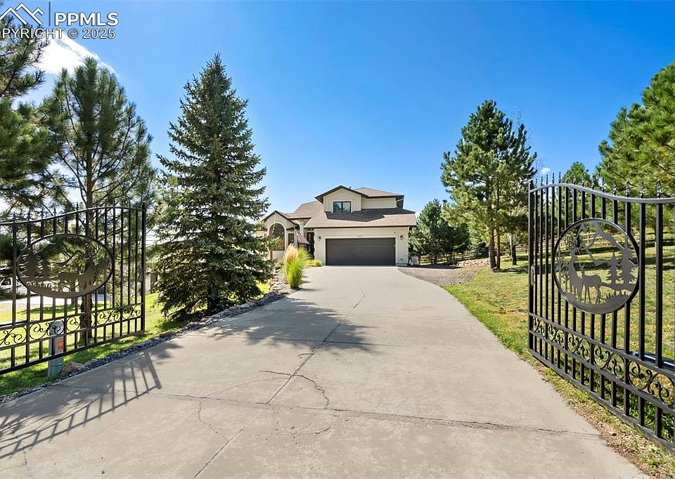 Discover this beautiful home in a quiet D38 west side neighborhood, nestled minutes from Mount Herman & on the edge of Pike National Forest. This unique offering encompasses 2 lots, totaling nearly 2 acres. One lot features a residence complete with a newly constructed detached garage and the adjacent lot to the east. Easy access to nearby trails & shopping—truly a blend of nature & urban living! The home has seen several recent enhancements, including exterior paint & gutters, and landscaped front yard showcasing a spacious flagstone patio. A newly installed generator ensures that comfort features like the newer A/C and furnace are always ready. A highlight of this property is the recently built detached garage, designed to accommodate at least 4 vehicles. It boasts excellent insulation, drywall & paint, heating, and a roomy workbench area equipped with many storage cabinets. Both lots are securely fenced and features two metal gates, easily operated via remote control or a smartphone app. Inside, you will find new fresh interior paint & carpeting. The kitchen is designed with granite countertops, slow-close cabinet drawers, and a gas range, alongside newer dishwasher & refrigerator. A gas fireplace & mantle in the front living room add a welcoming touch with hardwood flooring throughout the main level. On the upper floor, the master suite includes a walk-in closet, accompanied by 2 add'l bedrooms. The basement offers a spacious recreation room, a bedroom, and a flexible area suitable for various uses, along with a full bathroom, providing ample space for relaxation, privacy, and entertainment. Also newer washer & dryer included. The oversized back deck grants access to the gently sloping, usable lots. High-speed internet service is available on this street. This property is in the ideal location, 30 min south of Denver and a 10 min to the north side of Colorado Springs, perfectly embodying the essence of Colorado living at its best!