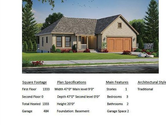 New build home that is stylish, yet a practical ranch home, with three bedrooms and two baths. With 9' ceilings, and an open-concept, this 1,333 square foot home will fit all of your needs. The kitchen truly is the heart of this home. With easy access from the garage, the kitchen opens to a large great room and dining room. A covered porch is adjacent to the great room, providing an outdoor living space. Don't miss the 10' ceiling in the master bedroom, and the large walk-in closet. Gas log fireplace in the great room. Partial stone accent on front of home with two car garage.