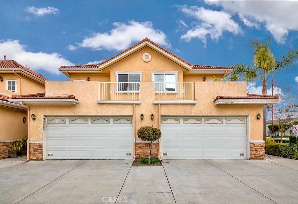 Charming two story town house with 3 bedrooms, 2.5 baths, and a 2 car attached garage w/ direct access. This home features laminate wood flooring all throughout, a cozy living room w/ a fireplace + dining space, and inside laundry room. The kitchen comes with granite counter tops and a small informal eating area. There are also two balconies and a nice size private patio. Community includes a a pool and spa.