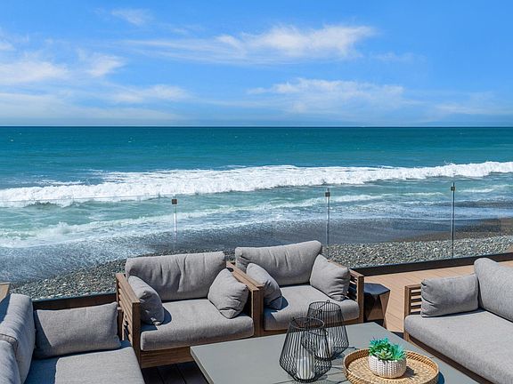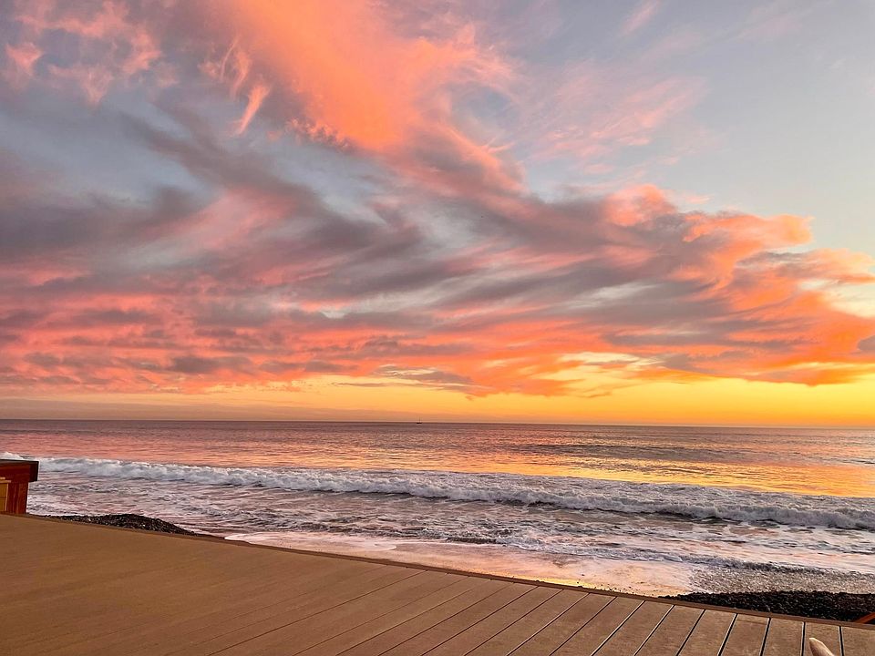 Relaxing beach paradise - this oceanfront, updated 1952 beach bungalow sits directly on the sand. The exclusive community of Beach Road provides privacy and seclusion rarely possible with beachfront property, tucked behind the gates of this exclusive guarded community in Dana Point, CA. The beach and ocean are right here. Unwind on the large deck with your morning coffee, see the dolphins swim by and birds dive into the ocean right in front of the house. Hear the waves crashing all day and night. This is the perfect getaway for families, couples or group of friends. Cozy up with a bonfire on the sand, or in the living room with a fire in the gas fireplace while you watch the waves and hear the sounds of the ocean. At low tide, you have direct access to the beach directly off the giant brand-new deck. At high tide, it feels like you are floating on a cruise ship, with waves coming right to the glass. Enjoy incredible sunsets, coastline, Catalina Island, and Dana Point views.