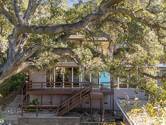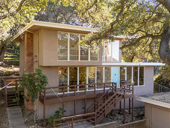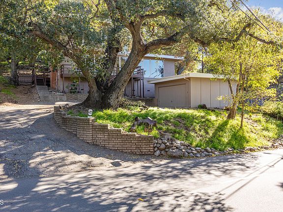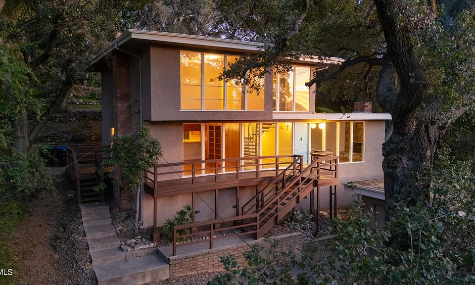 This striking Mid-Century Modern, located in Altadena's Millard Canyon neighborhood, captures sweeping views and reflects a design approach centered on light, volume and connection to the landscape. The open floor plan unfolds across four bedrooms and two and one-half baths, with generous family and dining areas, classic period kitchen and formal living room. Architectural details - rich wood paneling, stone fireplaces, hardwood floors, dramatic staircase and a two-story wall of glass - are featured throughout, reinforcing the home's strong indoor-outdoor sensibility. Decks extend living spaces outward, creating a seamless transition to verdant, park-like grounds framed by mature trees and established plantings, along with a detached two-car garage. The site offers a rare sense of privacy and calm, seemingly removed while remaining just minutes from popular shops, restaurants and major thoroughfares. Here is an exceptional opportunity to own a character property defined by thoughtful composition and a remarkable natural setting.