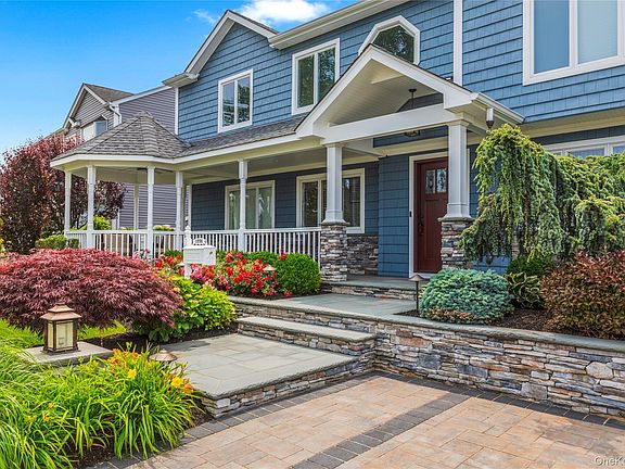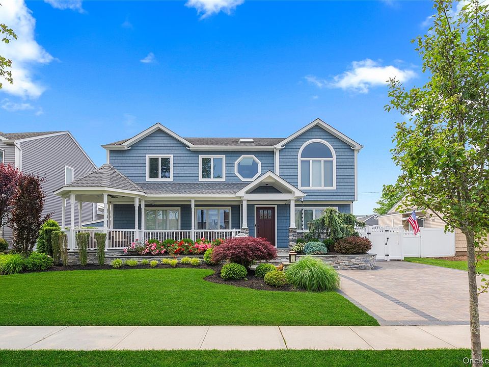 Nestled on a picturesque street, this beautiful home enchants with its stunning blue facade, lush mature landscaping, a welcoming front porch, and tasteful stone accents. The inviting exterior sets the stage for a residence that blends timeless charm with modern elegance. Inside, you're greeted by a grand foyer illuminated by a striking chandelier. The main living areas offer both comfort and sophistication, featuring a spacious dining room, an inviting living room, and an eat-in chef’s kitchen with abundant storage. Up the graceful staircase, you’ll find three well-appointed bedrooms, including a luxurious primary suite with soaring ceilings, walk-in closet and a serene en-suite bath complete with a deep soaking tub for ultimate relaxation. Outdoors, the home reveals a private oasis—a sparkling in-ground pool, inviting cabana with a soothing hot tub, complemented by a beautifully appointed outdoor kitchen. Together, they create the perfect setting for effortless entertaining and relaxing in refined style. This is more than a home—it’s a lifestyle. Welcome to your new home—where elegance and ease come together beautifully.
