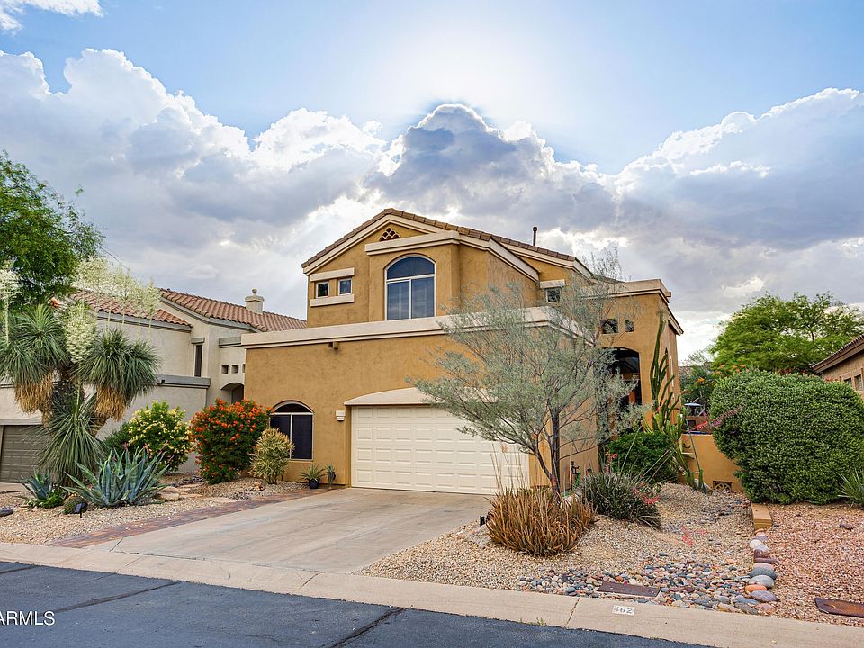 Relax and unwind after a long day in your tranquil backyard with Sparkling Saltwater Pool and Spa or entertain family and friends with your Built-in-BBQ and Covered Patio. Watch the sunset and bask in Arizona's beauty from your balcony and retreat to your master suite or bonus room/loft.