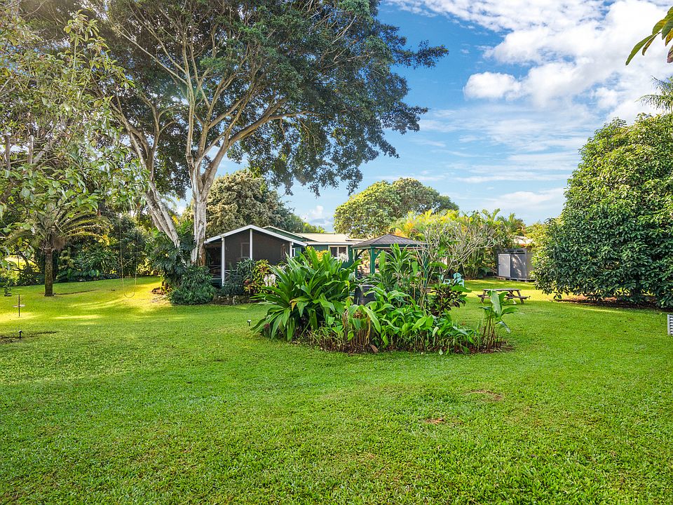Each residence offers three bedrooms, a covered carport, and an outdoor shower - ideal for rinsing off after the beach. Expansive porches extend the indoor living areas outdoors, creating a comfortable space to enjoy Kauai's year-round climate. The landscaped yard includes a gazebo for gatherings or quiet moments, along with a selection of mature fruit trees such as mountain apple, mango, banana, grapefruit, and calamansi.