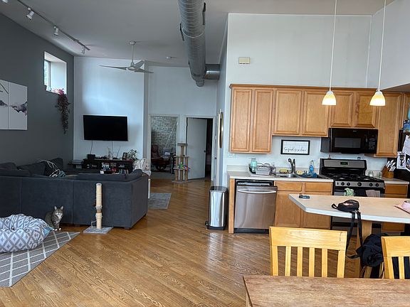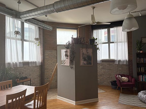 This is a very spacious two-bedroom loft unit with beautiful exposed brick walls, wood floors in the kitchen and living area, and carper in both bedrooms. The main bedroom comes with two spacious closets offering plenty of storage. The layout features an open natural light and character. High ceilings add to the airy, industrial feel. The unit is in excellent condition, newly renovated and located in the heart of Logan Square with a view onto Central Park Ave. 10 minutes' or less walk to Logan Square Blue Line (CTA) and popular Milwaukee Ave restaurants and nightlife (music venues, bars, art galleries). Quick access to multiple grocery stores, quality coffee shops, and superb green areas. In close proximity to the #56 Milwaukee, #82 Kimball, #74 Fullerton, and #76 Diversey buses. Tremendously trendy pedestrian&pet-friendly area with convenient, unzoned street parking. Unit has just been fully renovated and has like-new appliances. Hardwood floors in living room and both bedrooms, tile in kitchen and bathroom. Three walk-in closets, back porch space off the kitchen back door. Unit is heated centrally. Coin-operated laundry located in the basement. Water included in rent, tenants pay for gas and electric. Fantastic opportunity for anyone seeking the heartbeat and experience of Logan Square!