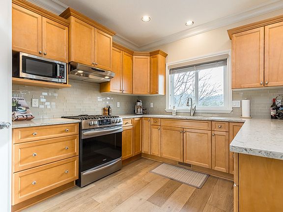 Prestigious McKinley Heights/Highlands - Bright, southerly facing 2 Storey with walkout basement and a 2 bdrm suite. This home has been loved by its original owners. There is new engineered hardwood floors and carpet installed in the top 2 levels as well as freshly painted. The home sits on a cul-de-sac with a gorgeous view to the west and the San Juan Island with a massive deck to enjoy the view. The suite has been finished to the same quality as the upstairs and has its own laundry. 2 gas F/P's, 9 foot ceiling on main and basement levels. 3 gas bbq/heater outlets outside. The kitchen has quartz counters, S/S appl and a large pantry. A/C Heat Pump to keep you cool. Custom wood blinds and Central Vac. Private yard. The cul-de-sac has a pathway to a elementary school and parks.