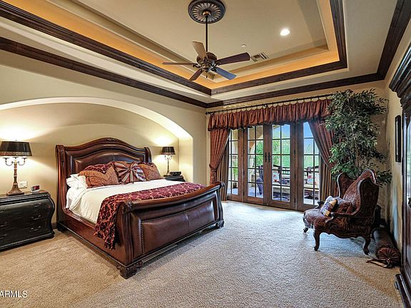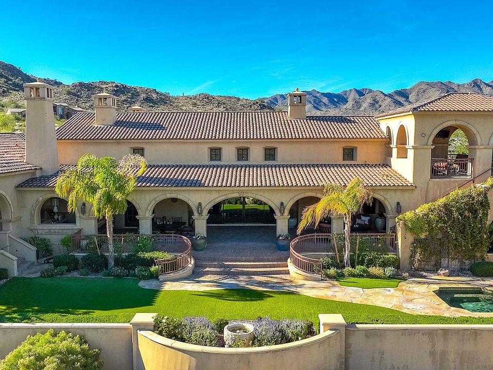Discover the epitome of luxury living in this magnificent Spanish Colonial Estate, nestled at the base of the White Tank Mountains within the exclusive Granite Ridge enclave in Verrado. A masterpiece of architecture and design, this residence is a true testament to sophistication and attention to detail. Positioned on the fairway of the Signature 12th Hole of The Verrado Golf Club, Founders Course, this residence offers not just a home, but a lifestyle surrounded by natural beauty and leisure. Immerse yourself in the finest quality materials and impeccable craftsmanship that went into creating this custom home. Every detail reflects a commitment to excellence, ensuring a residence of enduring beauty. Enter through a dramatic two-story entry into the heart of the home - the Great Room. Anchoring the main living space, the room boasts 16-foot coffered ceilings adorned with crown molding, creating an atmosphere of grandeur and elegance. An entertainer's paradise, grand pocketing doors seamlessly connect the indoors with the outdoors, leading to an expansive covered patio that epitomizes the best of Arizona living. The outdoor space features a remarkable outdoor kitchen, creating an entertainer's dream. Step into a serene oasis with lush and flawlessly manicured grounds. A generous spa invites ultimate relaxation, while multiple sitting areas provide intimate spaces to enjoy the soothing sounds of flowing water. Revel in breathtaking views from every corner of the property, whether it's the golf course, surrounding mountains, or pristine desert. The 2nd story view deck, private master bedroom patio, and the warmth of the outdoor fireplace offer diverse vantage points. The outdoor living spaces are meticulously designed, offering not only elegance but also functionality. Enjoy gatherings with family and friends against a backdrop of stunning Arizona landscapes. This Spanish Colonial Estate is not just a home; it's an experience. Indulge in the luxurious lifestyle it offers, from the grandeur of the architecture to the tranquility of the outdoor retreat. Contact us today to arrange a private tour and make this masterpiece your very own.