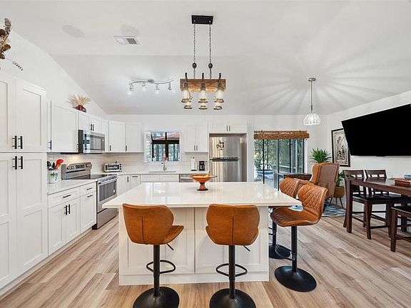 Beautifully remodeled 2-bedroom, 2-bathroom home with a 2-car garage PLUS A RARE 3RD BAY, this home offers an INCREDIBLE LAKE VIEW and a spacious, thoughtfully designed interior. From the moment you arrive, you’ll feel like you’ve discovered a HIDDEN OASIS—peaceful and private, yet conveniently located near everything Sarasota has to offer. The home features a NEW KITCHEN with NEW CABINETS and NEW QUARTZ COUNTERTOPS, a RENOVATED PRIMARY BEDROOM, and ALL-NEW FLOORING throughout the main living areas and bedrooms. Vaulted ceilings and an open layout with a LARGE KITCHEN ISLAND enhance the bright, airy feel. The living spaces are FRESHLY PAINTED in neutral tones, and the PRIMARY BATHROOM has been fully updated with a WALK-IN SHOWER, TOILET, and VANITY. Additional major upgrades include a NEW AIR HANDLER (2022), WATER HEATER (2024), ROOF (2023), and NEW INTERIOR DOORS. The LARGE SCREENED PATIO OVERLOOKING THE LAKE is perfect for enjoying true FLORIDA LIVING, surrounded by PALMS, MATURE LANDSCAPING, and a COOLING LAKE BREEZE. Ideally located just 6 miles from both downtown Bradenton and Sarasota, 8 miles from Lido Beach and St. Armands Circle, and only 5 miles from UTC—this home offers unmatched convenience while still feeling like a peaceful retreat.