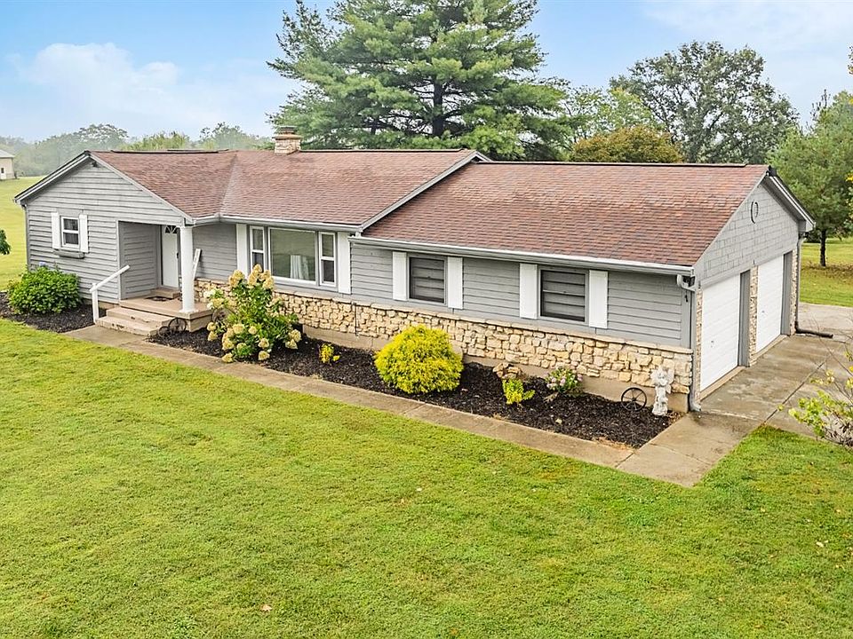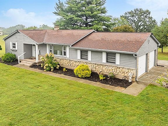 Welcome to 3558 Bellview Ln, a beautiful and peaceful 3 acre country setting that includes a well-maintained ranch home with full basement, attached 2 car garage, and a 30x40 pole barn with concrete floors, 10 foot door, electric, and 9x40 lean-to. Many recent updates including both bathrooms remodeled, one in 2025 and one in 2022 and new concrete patio perfect for relaxing & grilling. Two large bedrooms. Master suite has an attached full bath. Hardwood flooring throughout. (Except master but hardwood is possibly under the carpet.) Living room has gas fireplace for those cold country nights. Home has geothermal. Large basement creates a ton of space for storage or could be finished. Convenient location puts you a 5 minute drive to town of Rising Sun and 10 minute drive to Aurora. Seller offering 1 year home warranty. Schedule your showing today!