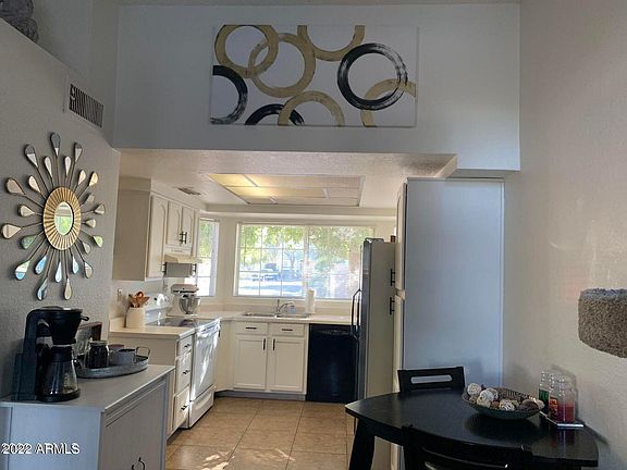 A great floor plan with two master en-suites upstairs, and a third bedroom downstairs with another full bathroom. Kitchen opens to the living area as an open concept floor plan with a finished back and side yard with patio and north/south exposure. Spacious finished two car garage with shelving for extra storage. Interior and exterior painted in 2020. Slider updated in 2020. Kitchen cabinets painted and hardware updated in 2020. New sink and faucet updated 2022. Refrigerator included is a white model, not same as shown in listing pictures. Back and side yards updated in 2020. Dishwasher upgraded in 2022. Small unique culdesac community with no through traffic, nice community pool and great access to the SR 51 and Loop 101. This is a great home in a great location.