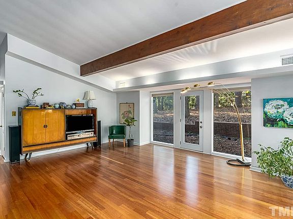 Welcome home to this amazing mid-century modern home! The home features one-level living, 2 car garage, over 1 acre of property, and unique design. Recently added, the modern gourmet kitchen and dining area feature high-end appliances, granite countertops and concrete floors. Walk-in closet, recently added laundry and powder rooms offer the comforts of modern living. The enclosed brick patio and tree-filled yard create a sense of privacy - yet you are only minutes to downtown Durham.