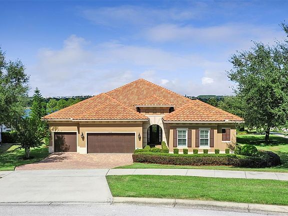 Discover luxury Florida living in this elegant Mediterranean-style home offering stunning Lake Felter views and a long list of premium upgrades throughout. This exquisite and functional 3-bedroom, 2.5-bath home with a separate office/den. At the heart of the home is the chef-inspired kitchen, fully remodeled in 2022 with top-of-the-line cabinetry, accent and decorative lighting, and an oversized island providing abundant storage, prep space, and seating. Culinary enthusiasts will love the professional Bertazzoni dual-fuel gas range, pot filler, built-in drawer microwave, and cabinet lift for your mixer. The butler’s pantry includes a wine and beverage center with ice maker, perfect for entertaining, while the walk-in pantry has been reimagined with floor-to-ceiling shelving for optimal organization. With a split, open-concept floor plan, separate dining room, and private office, this home effortlessly blends comfort, elegance, and functionality. Enjoy new luxury vinyl plank flooring in the main living areas, updated porcelain tile in the primary suite, and the refined touches of plantation blinds and and accented crown molding. The primary bedroom features a custom closet organization system, creating a boutique-style retreat. Additional upgrades include a 2022 HVAC system with ultraviolet lights and an advanced HEPA filtration system, a whole-house generator, two tankless water heaters, and prewiring for surround sound with a dedicated media closet. Step outside to your private oasis with a brand new luxurious salt system pool featuring programmable lighting and a screened enclosure overlooking beautiful Lake Felter. The pool has a relaxing built in sun shelf and spa. Pavers extend across the pool deck and driveway, complemented by the added benefit of gutters with underground downspouts and a French drain system for enhanced drainage and peace of mind. The three-car garage includes a 240-volt electric car charger and built-in hanging storage for added convenience. Ideally located close to Clermont’s shopping and restaurants, and just a short drive to all of Central Florida’s world-famous attractions and theme parks. Reach out today to see your private tour.