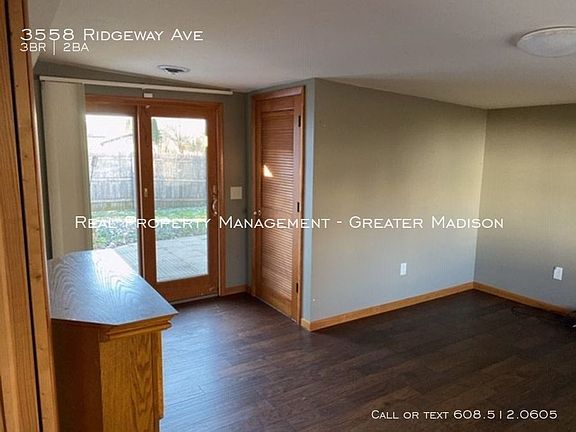 SCHEDULE A SHOWING ONLINE AT: showmojo.com/lh/398a46c0e9 Welcome home to this quaint, perfectly sized home close to MATC, parks, restaurants, shopping, theaters and more; less than 5 miles from downtown Madison! This ranch home, situated on a nice sized fenced in lot, offers 3 bedrooms, 1 bathroom and a spacious living room with a separate dining room/sitting area with tons of natural light and direct access to back yard patio space! Washer and dryer included. Separate garage and additional storage areas. Hurry, before it's gone! Please have the street number available.