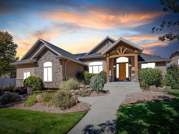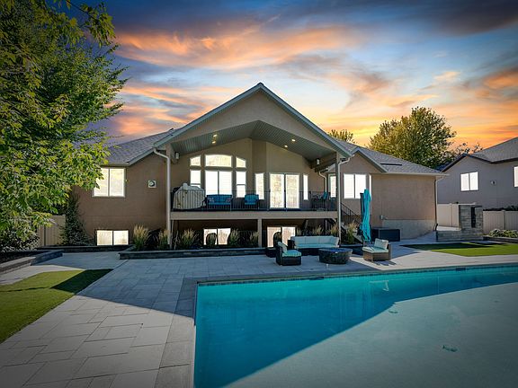 Unparalleled LOCATION, PRICE and AMENITIES - come see this luxurious, updated home located on a .37-acre lot in a quiet South Jordan cul-de-sac! Surrounded by lush, mature landscaping, this home offers an incredible outdoor oasis featuring a sparkling Saltwater Gunite Pool, enormous covered Trex deck, sound system with subwoofer, firepit, and more, ideal for entertaining or relaxing year-round! Grand entrance greets with a knotty alder front door, an exquisite chandelier and adjacent Formal Living Room. The main level showcases authentic hardwood floors coursing throughout and a welcoming, open layout. Pristine Kitchen showcases breakfast-bar seating, granite tops, rich cabinetry and custom tile backsplash! The attached Dining Area offers fantastic space and overlooks the backyard and pool offering seamless indoor/outdoor dining opportunities. The spacious Family Room showcases vaulted ceilings and is ideal for unwinding or entertaining guests! Main Floor also includes a large Primary Suite with a relaxing soaking tub, Euro glass shower, double vanity sink, and a walk-in closet with custom shelving! Downstairs showcases an expansive Family Room with a built-in fireplace and adjacent Kitchen! Additionally, there are two spacious Bedrooms offering plenty of space for your hobby room, game room, office, guest Bedroom and more! Seller's have invested in recent updates including $50K solar system, $30K replastered pool in 2025, new HVAC system, new roof 2021, 3-car garage with EV charger, and a beautiful front entry pond. Capitalize on this rare South Jordan gem and schedule a showing today!