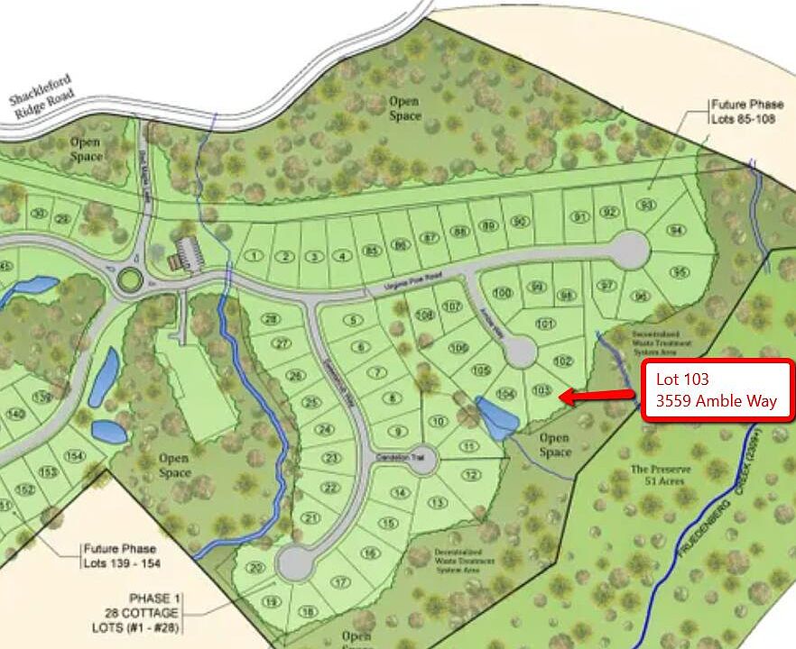 The Sanctuary at Wild Ridge! Custom home building lot at the end of the cul-de-sac on Amble Way. Build your home on this .45 acre, gentle sloping lot. Ideal for a walk out basement or just a crawl space. There is a state of the art sewer treatment plant in Wild Ridge that omits the need for sewer field lines on your property, allowing you place your new home where you want it without worry about building around the septic system. With 52% of the land in Wild Ridge remaining untouched you will not have any buildings behind this lot. The Preserve is a 51 acre park that borders Wild Ridge. There a very few lots left in this phase.