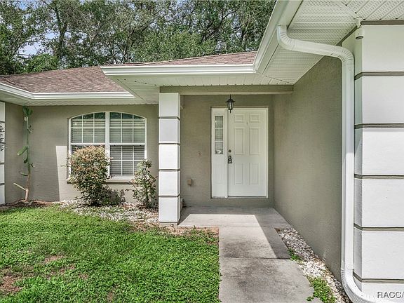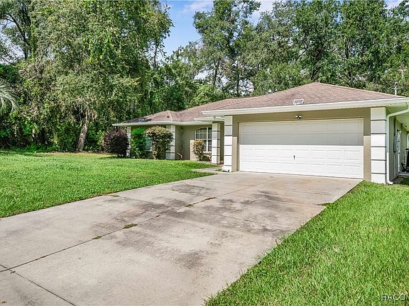 Located in Inverness FL, this 3 bedroom, 2 bathroom home needs a new owner. With its 1,451 sq.ft. living area, the house feels comfortable and easy to maintain. The open living room to the kitchen features carpet, with a transition to tile in the kitchen. The "new" trend, wood cabinets, offer plenty of storage space. The kitchen island is great for enjoying your meal(s), prepping diners and entertaining. The little covered patio can be reached by a glass sliding door. There is privacy in the back, no homes or neighbors to look at. The master bedroom has carpet and a good size walk-in closet. The master bathroom offers double sinks, toilet and walk-in shower. The other two bedrooms feature carpet, closets and use the hall bathroom. This hall bathroom has a combo shower/tub. The house is freshly painted inside. The garage can hold two cars. Or make room for your projects.The HVAC has been replaced in September of 2023. Roof is original as is the water heater. The lot next door is for sale by the same owner. Add more privacy!