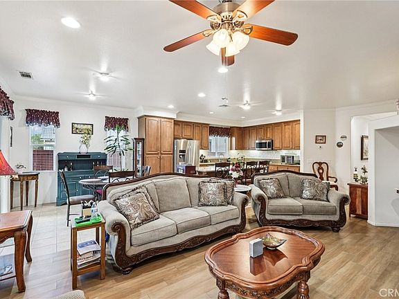 ASSUMABLE LOAN AT 2.25%! TURNKEY SINGLE-LEVEL HOME ON A QUIET CUL-DE-SAC! LOW HOA, LOW TAXES, AND IN THE TEMECULA SCHOOL DISTRICT! MORTGAGE SAVINGS MAY BE AVAILABLE FOR QUALIFIED BUYERS! This beautifully updated residence is filled with custom upgrades and thoughtful details throughout. Step inside to find new wood-look tile flooring in the main living areas, crown molding, recessed lighting with mini-fans, and ceiling fans in every bedroom for comfort and style. The gourmet kitchen showcases custom cabinetry, granite countertops, upgraded backsplash, stainless steel appliances, and an upgraded gas cooktop - all insured - perfect for any home chef. The spacious primary suite includes a remodeled ensuite with a newer walk-in shower enclosure, large walk-in closet with built-in shelving, and direct backyard access through a glass slider. The family room features a custom-framed fireplace, while the laundry room adds convenience with a utility sink. Enjoy outdoor living with an extended patio with solid wood oversized patio cover, custom hardscaping, and dedicated green areas with fruit trees including orange, guava, and lemon, and a variety of tropical plants. Located in a desirable neighborhood with low HOA, low taxes, and within the Temecula School District, this home also offers easy access to shopping, dining, and the acclaimed Temecula Wine Country.