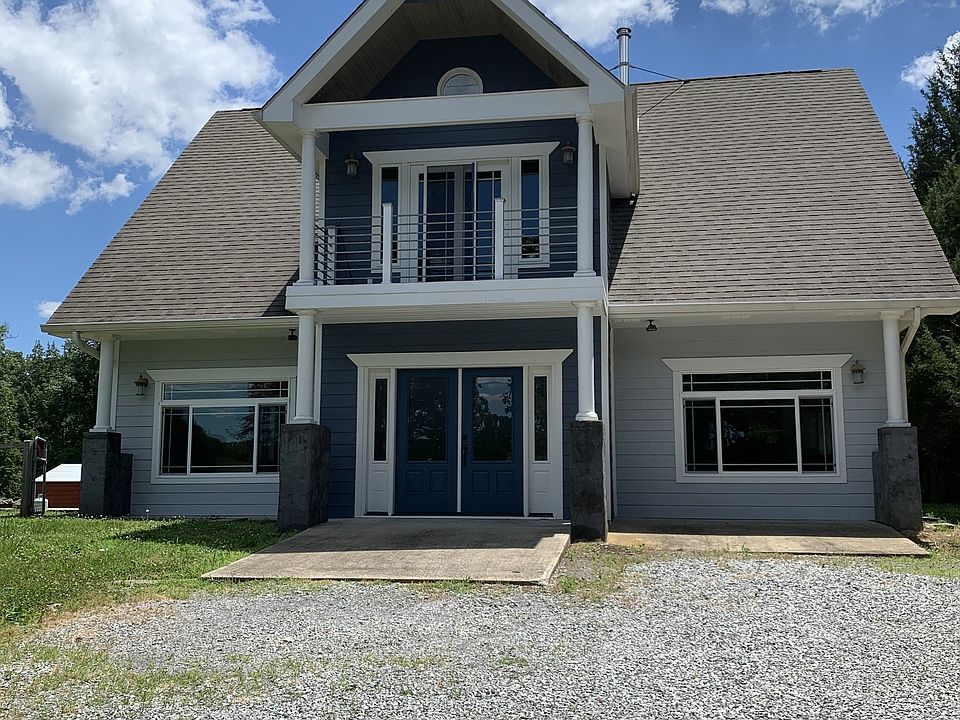 PRIVATE SETTING-2 bedroom, 2 bath home sitting on 18 +/- acres with open living room, dining room, and kitchen. Home has lots of windows to allow for natural lighting. Kitchen w/all appliances, pantry, and concrete counter tops. Perfect home office w/barn doors. Both large bedrooms have double closets. Sitting area upstairs w/wood burning stove and sliding doors to balcony. Front entry and side mud room from the patio area. Living area flooring cut into individual squares & hand-laid.