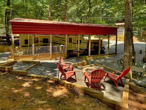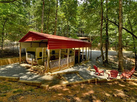 Nestled in the Coosawattee River Resort, this Covered move-in ready 2017 RV is a true marvel. Equipped with a cozy queen bed and an abundance of space, you'll feel right at home from the moment you step inside. Also comes with 2 Ring cameras. Extra added foam insulation to keep you warm on winter evenings! Sale comes with full propane tank! Step outside to discover a beautiful sitting area where you can unwind by the firepit and enjoy the serene surroundings. The deck space provides the perfect spot for al fresco dining or stargazing under the night sky. Explore the great outdoors with ease, discovering hidden trails and breathtaking vistas. Don't miss this rare opportunity to own a versatile property that combines the comfort of a well-appointed RV with the allure of a scenic escape- make it yours today! Amenities such as river access, gated entrance, 3 pools (one indoor), tennis/basketball courts, mini golf, parks, pavilions, and walking trails. In the heart of wineries, eateries, antique stores, hiking/biking.