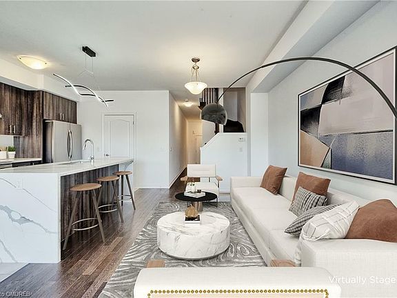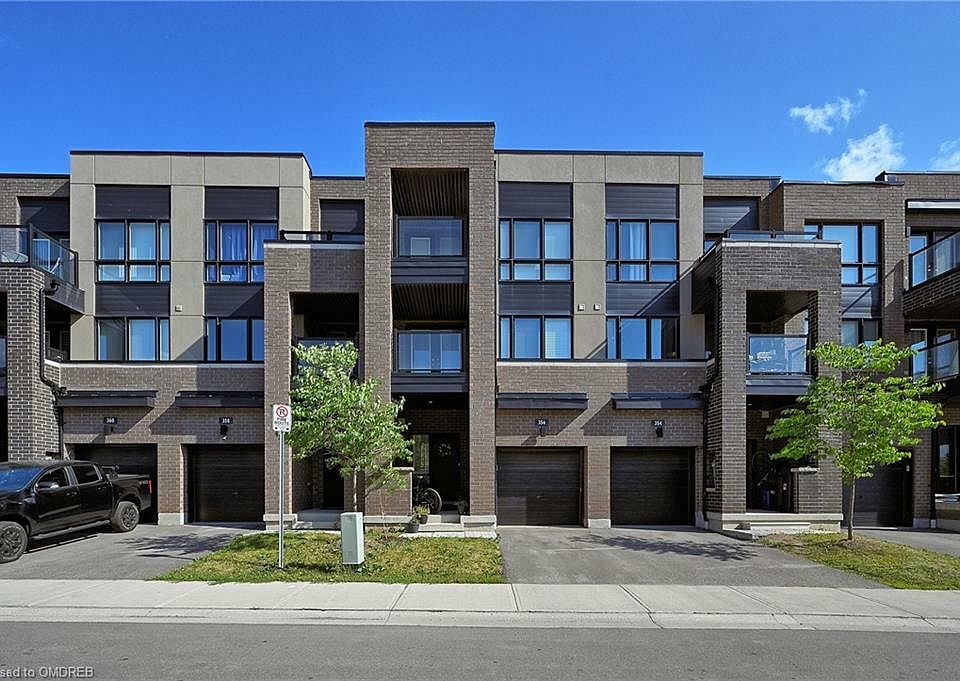 Wonderful executive freehold townhouse located in North Oakville's Oak Village community. This modern designed townhome features 3 bedrooms, 2+2 baths, and offers 2,714 sq ft of finished living space. The main floor features an open concept kitchen/living area with stainless steel appliances, centre island featuring a quartz waterfall countertop, subway tile backsplash, hardwood and ceramic tile flooring and a large mudroom with access to the garage. The primary bedroom features a 5-piece ensuite with freestanding deep soaker tub, seamless glass shower, double vanity with quartz stone countertop, undermount his and her sinks and a separate walk-in closet. The second level also features 2 additional bedrooms, second floor laundry and a 4-piece main bath. The spacious third storey loft is perfectly suited as a possible 4th bedroom and/or large family recreation room. A 2-piece powder room and large outdoor terrace is also located on this level. This premium southern exposed lot, backs onto a large pond/water feature providing maximum all-day sun and offers fantastic outdoor space with 3 separate private balconies in addition to the large (327 sq ft) third floor terrace. RECENT UPDATES (Nov 2022) include: NEW countertops in kitchen including quartz stone waterfall island, NEW quartz countertop in primary ensuite and main bath as well as NEW undermount sinks and faucets, NEW floating stone vanities in main floor powder room and as well as loft powder room, NEW laminate hardwood flooring throughout bedroom and loft levels, freshly painted throughout, NEW finished lower level with laminate hardwood flooring, LED pot lights and creation of rec room in walk-out lower level. Close to schools, shopping, parks, and major highways.