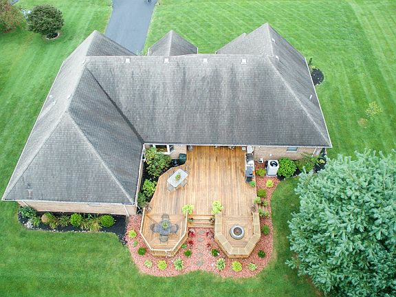 Fenced in back yard. Beautiful, rolling pasture with horses on adjacent property.