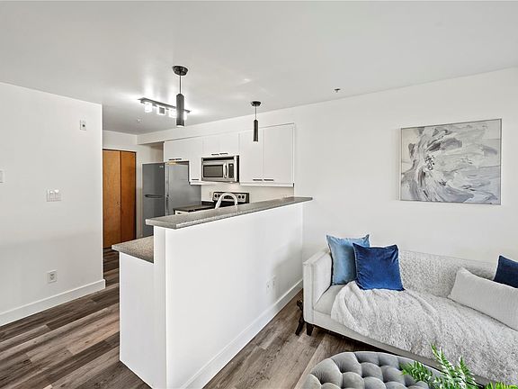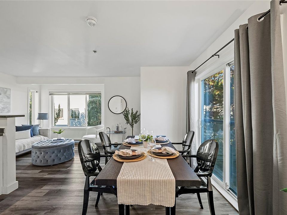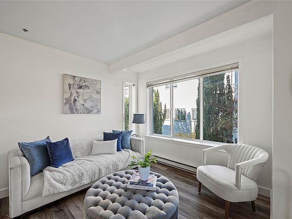 *Open Sun 12-1:30* This bright and spacious corner condo offers unbeatable value across from the scenic Selkirk Waterway. Get the lifestyle for half the price. Redeveloped in 2008, it shows like new with modern finishes including bamboo laminate flooring, ceramic tile, and updated appliance package. The smart layout features a generous bedroom with a spacious closet, in-suite laundry, and separate storage. Enjoy waterfront living with kayak launch, stylish restaurants, gym, coffee shops and the best patio in town across the street! 2 mins to the Trestle Bridge, 10mins biking to downtown, direct bus routes to UVic. Zoning allows live/work flexibility—ideal for creatives or professionals. This pet-friendly strata includes secure bike storage, rooftop deck, off-street parking, and low fees. Walk everywhere with ease—close to Mayfair/Uptown Malls and nature trails. A fantastic lifestyle or investment opportunity in a growing neighborhood. Book your private viewing today!