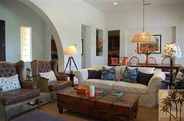 This house is a 10! The furniture is lovely and the interiors have recently been repainted. The home is on the golf course, overlooking a lake to the mountains beyond. The pool has a beach entry, large outdoor and partially covered patio space and bbque island. The kitchen is large and has pull up counter stools as well as a dining table and high end appliances. Butler's pantry leads to a formal dining area and living room. The causal, beach style interiors are fresh, clean and charming. The master bedroom is large and overlooks the pool area and mountains. The guest wing has a separate entry and each bedroom has its own bathroom. This home is priced aggressively and is ready for move in. Don't miss seeing it! Brokered And Advertised By: HK Lane Real Estate Listing Agent: Deborah Romness