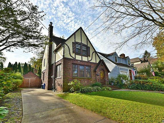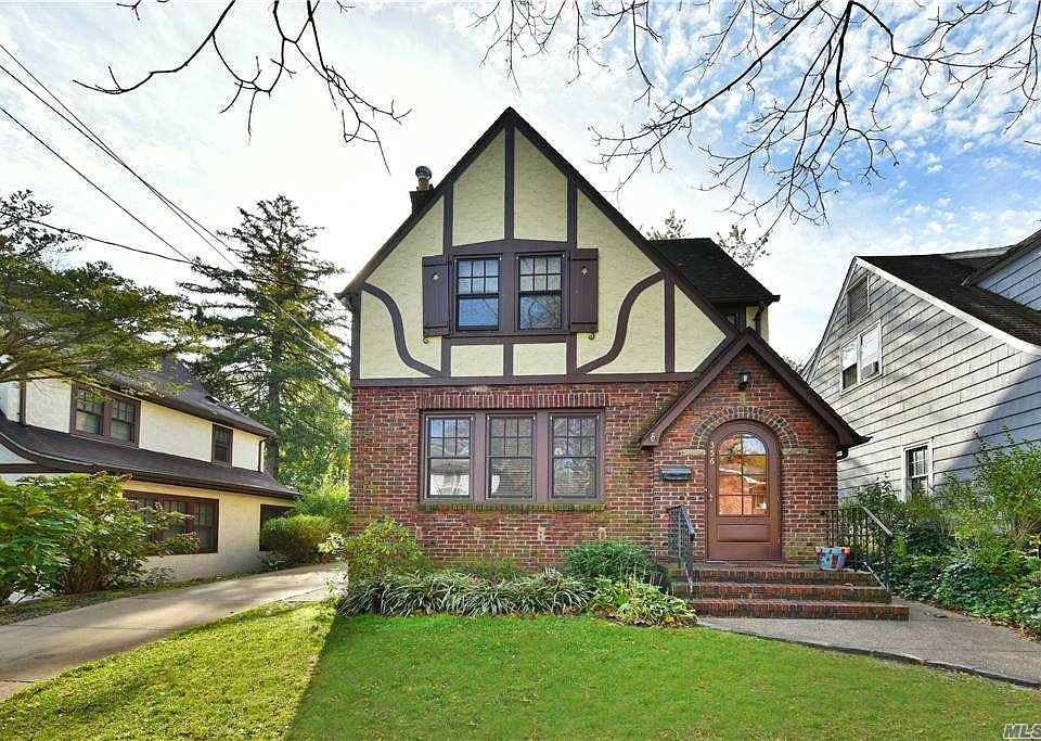 "Hansel and Gretel English Cottage" in the Historic District of Douglas Manor. Exposed brick chimney with gable roof and arched doorway, brick steps, cobblestone framed sidewalk and curb, classic shutters, original front door. Excellent condition with 4 bedrooms, living room with fpl, newly renovated kitchen, detached garage, cesspool was done in 2016, 3 zone heat, 2 zone central air, fence is 6 months old, easy access to private yard from kitchen.