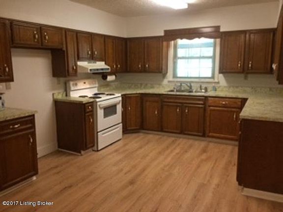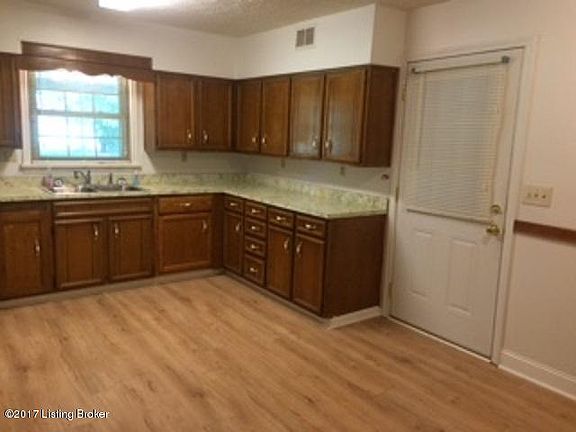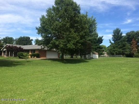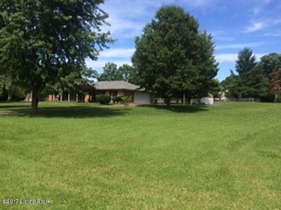 Family room has brick fireplace with wood burning stove. Eat in kitchen with large utility room off of it. Large garage with pull down ladder to storage area. Covered back patio. Back yard has chain link fence and storage shed with 2 dog runs attached. Home is located on dead end street.
