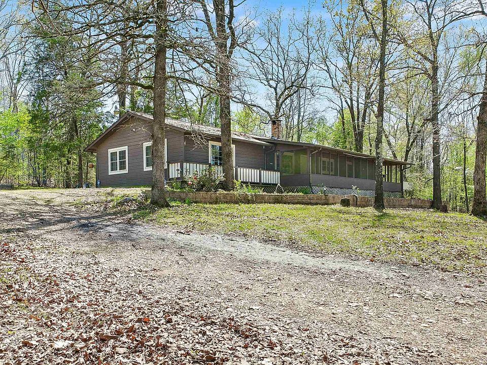 Are you looking for a quiet and peaceful place to live? This might be it. A log siding home, 1620 sq ft with a 400 sq ft screen enclosed porch on 3+/- acres. CH&A. Built in 1985. Wood deck walkway around side and back of house. Huge living room with sewing closet. 2 Bedrooms and 1.5 Bath. Lots of storage in bathroom and laundry room too. Nice kitchen with updated appliances. Energy efficient windows and newly installed insulation in roof and duct work sealed. 576 sq ft metal shop with 12x24 lean-to. All this sits upon a hill overlooking your own fishpond. Several area lakes nearby.