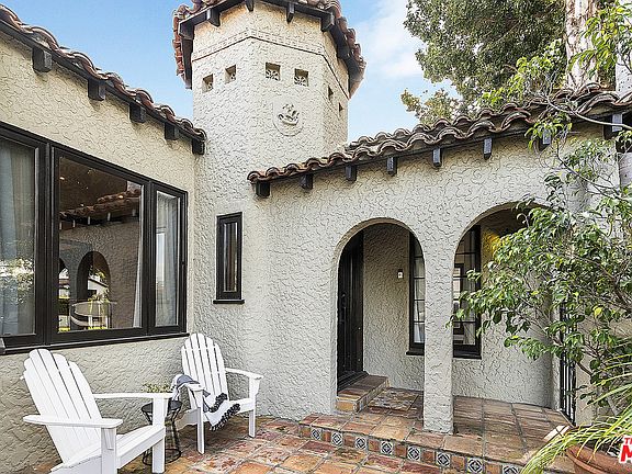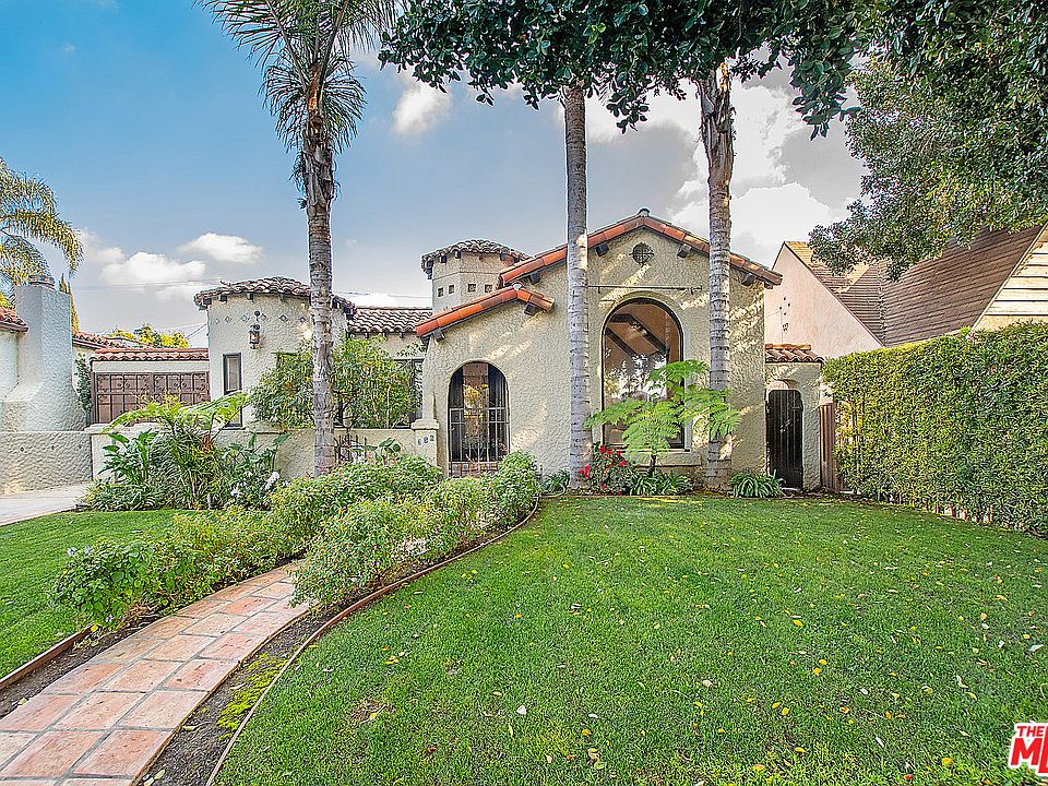 BEAUTIFUL CHARACTER-RICH SPANISH WITH GUESTHOUSE IN BEVERLY GROVE. This stylish home offers the perfect blend of architectural beauty and modern amenities. Admire the double rotunda design as you enter the enclosed front patio into a grand step-down living room with vaulted beamed ceiling, picture window and fireplace. A large, central formal dining room adjoins the fully updated kitchen with stainless steel appliances, granite counters and breakfast room. Three generous bedrooms offer multiple French doors leading to an entertainer's backyard with a private trellised patio off of the master and a full guesthouse with bath. Additional features include period details throughout including archways, French windows, hardwood floors, base and crown moldings, built-ins, master bath with separate shower and soaking tub, central AC, Nest thermostat, recessed lighting, outdoor kitchen and gated driveway. Don't miss this wonderful home in an ideal location.