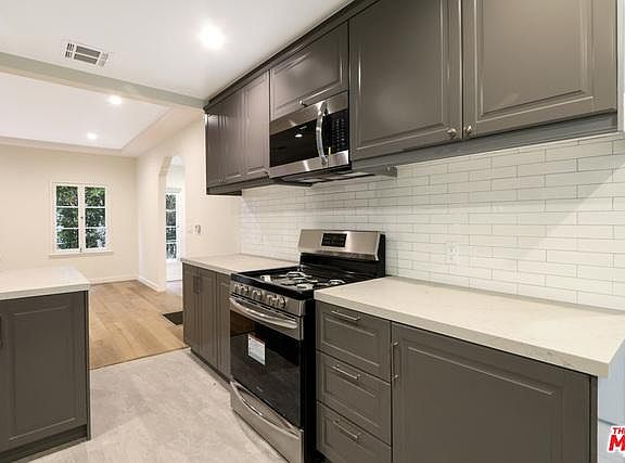 Fully Renovated (2018) charming & spectacular 3Bed./2.5Bth Townhome with its own private entrance in prime Beverly Hills. Front entry hallway leads to a grand living room with high ceilings, formal dining/ family room connected to a new designer kitchen with stainless steel appliances, custom built cabinetry & a separate washer/ dryer area. A beautiful staircase connects the ground floor to 3 good sized bedrooms with designer bathrooms and generous closet space on the upper floor. A separate powder room down stairs. Top quality finishes throughout including wood floors, recessed lighting, desiger stones & tiles in kitchen & bathrooms. Extremely light, bright and private. Two side by side parking spots. Min. one year lease. Landlord pays for water; Tenant pays for gas & electric