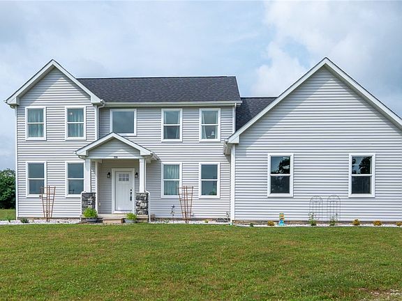 Custom Built Parry Home in 2022, this residence showcases sleek, modern design. Set on 6+ acres, you’ll enjoy wide-open views in every direction. Inside, the bright, thoughtfully designed layout features hardwood floors, oversized windows, and a striking stone wood-burning fireplace anchoring the living room. The kitchen is a chef’s dream with granite countertops, a large island, and walk-in pantry, all flowing into the spacious great room and dining area. Potential main-level primary suite includes a walk-in closet, while upstairs offers 3 generously sized bedrooms and 2 full baths. The lower level holds tremendous potential, create a game room, man cave, playroom, or additional living space. Outdoors, enjoy gardening, recreation, or simply soaking in the peaceful views. Whether you’re dreaming of a mini homestead or a home built for entertaining, this property delivers space and comfort. Unfortunate for the sellers, due to relocation, they must move on from this great home.