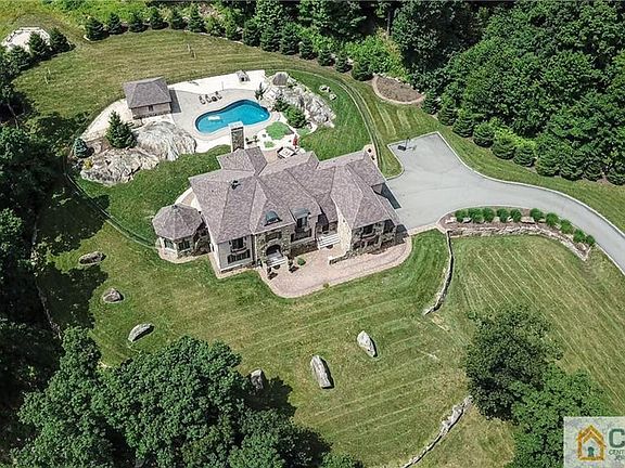 Spectacular European style Custom built Colonial sits atop your own private mountain. Over 5800 sq ft. consisting of 5 bedrooms 4 1/2 baths Inground concrete pool with waterfall on over 5 acres of privacy,From the time you walk up the custom from doors this home will amaze you. 2 story entry foyer with marble floors. EIK with Granite counters/center island/viking SS appliances/and custom birch wood cabinets. Imported tile flooring. Custom masonry wood burning fireplace in family rm. 4 zone heat and central AC. Custom Crown moldings on baseboards and casing throughout entire home. 4 Red Oak floors.Built in Sound system connected to AV receiver. Anderson 400 series casement windows with dividers. The roof is GAF Grandslate Middlebury w lifetime guaranty. All closets are custom made. Exterior of home is made from the stone blasted from foundation. Mstr bedroom has 2 walk in closets w bar and exercise/sitting room. There r 2 many amenities to list. must see.