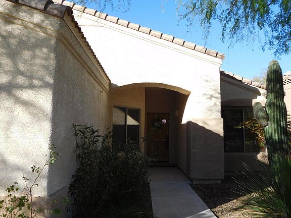 Desirable Monterra Ridge 3 car garage home with great layout. Home offers vaulted ceilings, newly painted, wired for surround sound, real alder wood front door, wood blinds, and 3 bed PLUS DEN. Floorplan features large greatroom that includes family room, dining area & kitchen. The kitchen offers island w/breakfast bar, plenty of counter & cabinet space & stainless steel appliances. Master bathroom is large & offers walk-in closet & bath w/separate tub/shower & dual vanities. New water heater. Private backyard features covered patio, grass, fruit trees & well landscaped. Enjoy mountain views from the front and backyards. Lovely Oro Valley home!