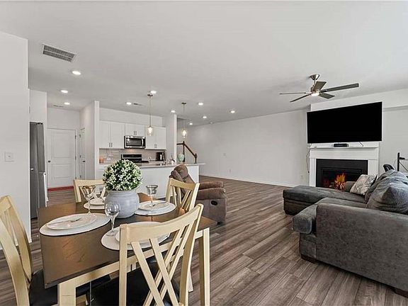 Welcome to your dream, lakeside townhouse at Encore, one of Duluth’s most sought-after communities! This nearly new, 2-year-old townhome offers 3 spacious bedrooms, 2.5 bathrooms, and a versatile loft—perfect as a home office, reading nook, or playroom; all designed with modern living in mind. The main level offers a bright, open-concept featuring luxury flooring, a spacious living area with serene lake views, and a dining space that flows into the modern kitchen. The kitchen shines with luxurious quartz countertops, a large island, stainless steel appliances, and a walk-in pantry. Step out to your private patio to enjoy morning breakfast or unwind by the lake in the evenings, perfect for entertaining guests or winding down after a long day. Upstairs, the primary suite is a true retreat with tray ceilings, abundant natural light, a walk-in closet, and a spa-like bath with dual sinks and a glass-enclosed shower. Two additional bedrooms, a full bath, and a convenient laundry room complete the second floor. Encore offers resort-style amenities: a swimming pool, tennis courts, 50+ acres of green space, scenic lakes, and well-lit walking trails that connect to Cauley Creek Park, Rogers Bridge tubing launch, and the Chattahoochee Dog Park. With quick access to top schools, shopping, dining, and major highways—and just minutes from the beautiful Chattahoochee River—you’ll love both the convenience and the lifestyle this community provides. Don’t miss the chance to call this lake-view townhome your new home!