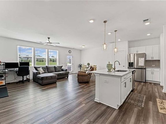 Serene lake viewsPrivate patioLarge islandBright open-conceptAbundant natural lightModern kitchenLuxury flooring