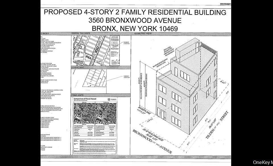 Development Opportunity on a Corner Lot! 3560 Bronxwood Avenue presents a fully approved development site with plans for a brand-new 4- story, 2-family residential building. Situated on a prime 1,718 sq ft corner lot in the Bronx, this property is located within an R6A zoning district, offering excellent flexibility for multi-family development. All approvals are already in place, giving you the ability to move forward immediately with a modern project that aligns with the area’s strong rental demand. The proposed design allows for spacious layouts across multiple floors, providing the potential for large, desirable rental units with abundant natural light thanks to the corner exposure. Developers will appreciate the shovel-ready status of this site, saving both time and expense on planning and approvals. The property’s strategic location adds to its value. Just steps away from public transportation, including major bus lines and nearby subway stations, it offers convenient access throughout the Bronx and into Manhattan. Local schools, shopping centers, and restaurants are all within close reach, ensuring strong long-term demand from families and professionals seeking quality housing in a well-connected neighborhood. With Bronx real estate continuing to see growth and limited inventory for new construction projects, 3560 Bronxwood Avenue represents a rare turnkey opportunity. Whether your goal is to build and hold for steady rental income or complete and resell for a profit, this site provides the foundation for a highly attractive investment.