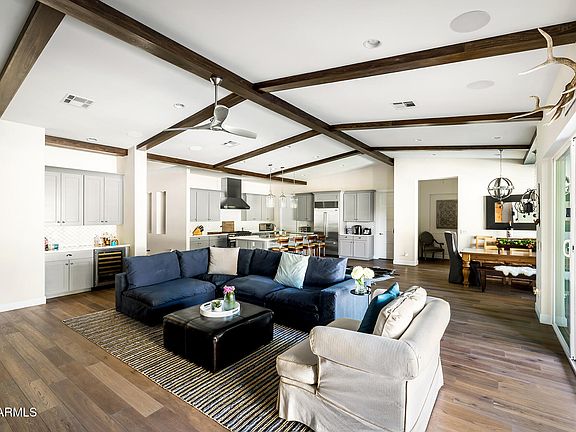 Exquisite Modern Ranch in Prestigious Biltmore Heights. This exceptional home embodies timeless elegance & modern sophistication situated on manicured landscaping on a large, lush, private, corner lot. masterfully curated, featuring soaring ceilings accented w/exposed wood beams, wide-plank hardwood floors & open-concept layout. The gourmet kitchen is appointed w/custom cabinetry, premium appliances & grand island, flowing into the living & dining areas w/walls of glass that dissolve the boundaries between indoors and outdoor. Four spacious en-suite bedrooms, plus private office, game room & exercise/yoga space offer lots of options for flexible living. The resort style pool/spa, built in BBQ/kitchen, firepit, & lush grounds are designed for relaxation & fun entertainment!