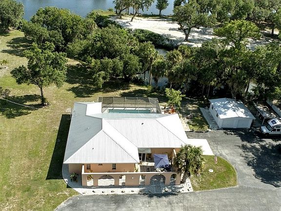 The House is NOT IN A FLOOD ZONE, AND ACCESS TO THE ATLANTIC, GULF OF MEXICO AND LAKE OKEECHOBEE, ON THE CALOOSAHATCHEE RIVER WITH PROTECTION FROM TIDES AND FLOODING BY LOCKS ON THE EAST AND WEST! Priced to Sell as one of the lowest priced river-front homes on the market! This updated pool home, is located on an oxbow of the old river with 594 feet of river frontage, with protected dockage (dock in need of repair) & boat ramp, and no corp easements! With deep water access to the Gulf of Mexico, Atlantic Ocean and Lake Okeechobee! Featuring beautiful custom Cypress cabinets, and accent walls throughout the house, beautifully restored original terrazzo floors, impact windows and doors including garage door, a resurfaced heated pool, newer appliances, new water heater, metal roof, newer water softener system, a 2 car attached garage + a 2 car detached garage / workshop, boat house and has been freshly painted inside and out. The beautiful 2.35+/- property has a variety of fruit trees and plants, and of course some of LaBelle's famous old oaks. Located in the historic Fort Denaud area this is a property that you don't want to let get away!
