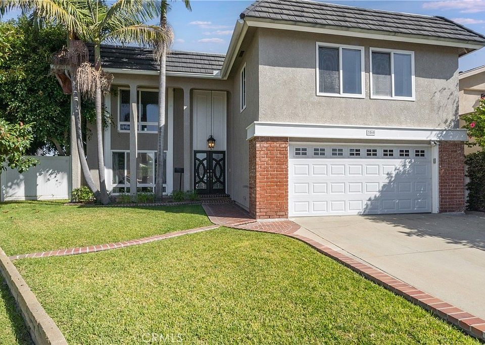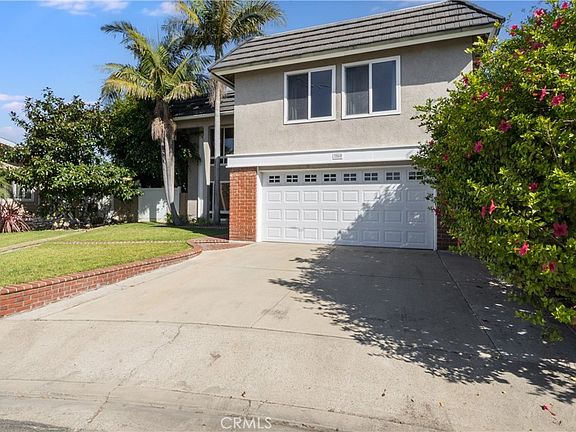 Welcome to the elegant and spacious home located in highly sought after College Park East community. Situated in a Cul-De-Sac, this home offers beautiful curb appeal. Consist of four bedrooms, two full baths, one half bath, and a huge bonus room that can be used as a 5th bedroom or media/game room. Home offers a gourmet kitchen that is open to family room with a cozy stone fireplace. Marble countertop in kitchen creates luxurious touch. Step out of the family room to a serene backyard, you will find a swimming pool and rock waterfall; large open space next to the pool offers endless summer fun gathering with friends and family. All bedroom are on 2nd level; an enormous primary suite offers walk-in closet. The powder room located on first floor near formal entryway makes it convenient for guests to clean their hands when visiting. Stone tile in bathroom and laminate flooring throughout the house. Lots of windows and sliders bring in tons of natural lights. Home has direct access to the garage, separate laundry area, extra long driveway and a Tesla charger equipped in the garage. The community offers tennis/pickleball court, parks, a short drive to shopping, restaurants, golf course, and beaches. Home located in Los Alamitos Unified School District. Virtual tour available.