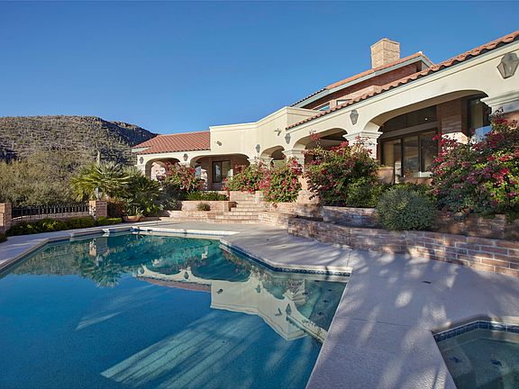 Tucked away in the FAR REACHES of Tanque Verde Valley within gated, Redington Ranch Estates lies this 4,091 sqft, 3br, 5 ba Mission style home affording SWEEPING city lights and STUNNING eye-popping views SWOOPING thru canyons, hills and mountains. DRONE VIDEO - click on Photos/Video. 2.6 acs w/ infinity acres BORDERING 480' of NATIONAL FOREST. Includes Guest Casita and TWO BONUS ROOMS, one w/ large viewing deck! Entry through private, driveway gate that borders forest line to impeccable maintained front entry. High, SOARING, beamed ceilings & walls of windows = abundance of natural light, outside-in feel. Striking copper sculpture ACCENUATES living area; EXPANSIVE saltillo tiled veranda runs length of home, overlooking pool and entire Tucson valley to glorious sunsets. METICULOUSLY MAINTAINED inside and out for 24 years. Comfortable master wing, open living and dining rooms and kitchen with center island. 941 sqft GUEST CASITA boasts wood-burning fireplace, creating very homey feel. Community Clubhouse w/ on-site manager, kitchen, pool, horse stables/stalls, tennis court. Quick easy access to thousands of acres of riding and hiking trails. Propane gas only to pool/sp