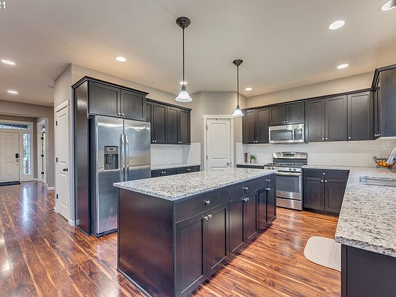 This beautiful home has incredible views of Mt Hood. Move in ready with 4 bedrooms, 3 full baths, office, laundry room and 2 car garage. Open great room with custom built ins & gas fireplace. Gorgeous kitchen with large island, slab granite counters & walk in pantry. Natural light throughout. This will not last.