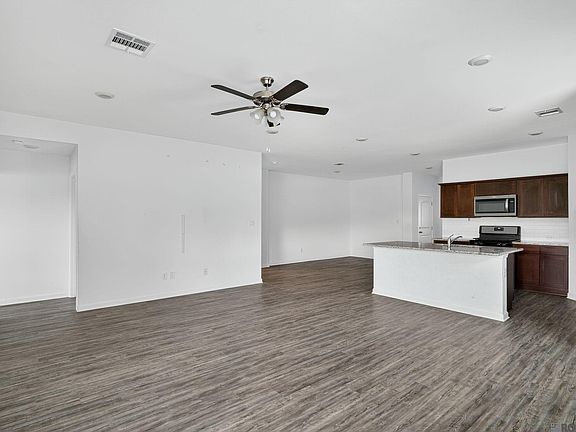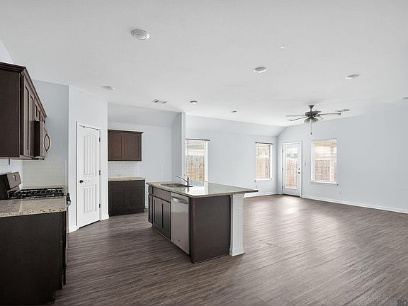 Beautiful and spacious one-story home! Lake Lot with large fully fenced in back yard! Community play ground and splash pad for the kids! Home has modern, open floor plan design. The family room overlooks the covered patio. The kitchen has a large island, pantry, and is open to the breakfast area. The bedroom suite has a large walk-in closet. Modern finishes include 3 cm granite, stainless gas appliances and hard surface flooring. Tank less water heater. Never run out of hot water!