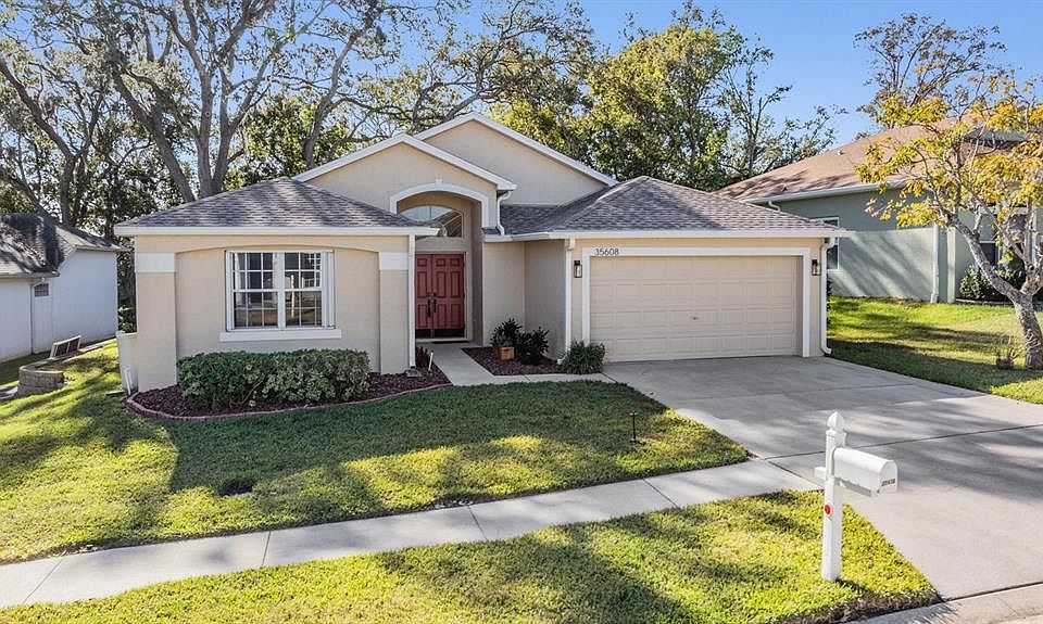 Solid Construction, Modern Comfort, and Resort-Style Living - All in one beautiful home! Welcome to this move-in-ready 3 bedroom, 2 bathroom block home nestled in the highly desired community of Lake Bernadette, a well-established neighborhood in Zephyrhills (bordering Wesley Chapel) with beautiful canopying oak trees/mature landscaping and plentiful community amenities, you'll have access to 2 community pools (the main pool is open year round and heated during cool months), tennis and pickleball courts, a fitness center, and a calendar full of group activities- all included with low HOA and CDD fees. Built to last with sturdy block construction, this home offers peace of mind and lasting value. Step inside to find tasteful updates throughout - including granite countertops, SS appliances, durable LVP flooring, stylish lighting fixtures, and sleek new plumbing fixtures - making this home as stylish as it is low maintenance. The spacious, open floor plan offers great flow, with the primary suite tucked away from the additional bedrooms. Enjoy your morning coffee or unwind in the evening in the Sun-room overlooking a peaceful, fenced backyard- perfect addition for hosting gatherings, entertaining, or quiet relaxation. Major systems have already been taken care of for you, including a new roof (2023), a new HVAC system (2019), fresh interior and exterior paint (2024). Ideally situated in Central Florida, a quick drive near Tampa, Orlando, Gulf Beaches, and Florida's natural springs, this home offers the perfect blend of convenience, community, and comfort. Don't miss your chance to own a solid, beautifully updated home in one Zephyrhills' most welcoming neighborhoods. *Please note that the finished Sun-room square footage (225 sf) is not included in the main square footage, but adds a great bonus room to enjoy year round. Could be a great playroom, exercise room, office, art room, card/game room, additional eating/seating space.