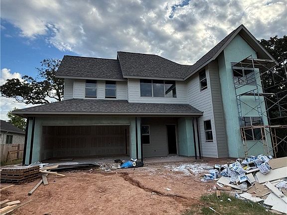 Step into refined living in the highly sought-after Mission Ranch neighborhood—just minutes from Texas A&M University offering ample community amenities. This home offers 4 spacious bedrooms, 4.5 bathrooms, dedicated office, game room, and a MUD area, all crafted with function and upscale design in mind. Downstairs, enjoy a private owner’s retreat tucked at the back of the home, featuring a luxurious spa-inspired en-suite with a sleek wet room showcasing a freestanding tub, dual shower heads, and modern finishes that evoke a high-end hotel experience. The oversized 16'+ walk-in closet is outfitted with custom shelving. An additional bedroom and bath downstairs, featuring a walk-in shower, provide flexible living options. Upstairs, discover two generously sized bedrooms, each with its own en-suite bathroom—alongside a large game room. Throughout the home, you’ll appreciate the abundance of cabinetry, offering ample storage. The open-concept kitchen and living space is framed by a stunning cathedral ceiling and decorative beam, anchored by a 42" Heatilator Novus Direct Vent Gas Fireplace. The kitchen features an impressive GE Café appliance package including a 36" range and a 22.3 cu. ft. ENERGY STAR Smart 4-door French door refrigerator. Situated on an oversized lot with mature oak trees, the yard provides ample space for outdoor living. Built with quality in mind, this home features 2x6 exterior walls and engineered slab and framing.
