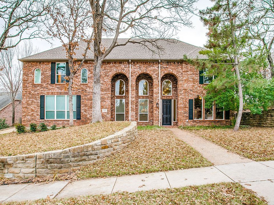 Step into the inviting open-concept living area featuring vaulted ceilings and a cozy gas fireplaceperfect for relaxing evenings at home. The gourmet kitchen is a chef's dream, equipped with a premium 48" Wolf gas cooktop with a 24" griddle, built-in oven, convection microwave, beautiful granite countertops, ample cabinetry, a spacious pantry, and a charming breakfast bar overlooking the serene backyard. The formal dining room, filled with natural light and views of the tree-lined backyard, offers flexibility to suit your lifestyle. The downstairs laundry doubles as a butler's pantry with convenient access to the third-car garage. Retreat to the spacious primary suite with a beautifully remodeled ensuite bath, while a guest bedroom and full bath are also located on the main floor. Upstairs, two bedrooms share a Jack-and-Jill bath, and the fifth bedroom enjoys its own private wing and bathideal for guests or multigenerational living. You'll also find a second laundry room and a large family room with its own balcony, perfect for unwinding while overlooking the private backyard. Comfort and efficiency are top priority, with a zoned HVAC system upstairs and sensor-based zones downstairs. Located in the acclaimed GCISD and just minutes from shopping, dining, DFW Airport, and steps from scenic Parr Park, this beautifully updated home feels like new.