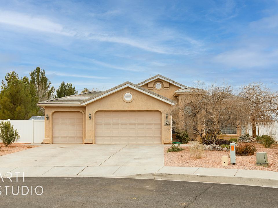 Four bedroom, two and a half bath home, with two living spaces and a three car garage. New LVP floors throughout most of the home. New tank-less water heater. Huge yard, large shade trees and gardening space. Mature fruit trees. Pomegranate bushes and grape vines were recently planted. Beautiful views of the red rocks! Located in Santa Clara on a cul-de-sac. Great neighborhood, close to Harmon's