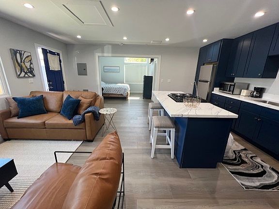 Fully furnished Contemporary 1bdrm ADU with private entrance situated in the heart of Baldwin Hills with an open floor plan and modern appliances. The bedroom features a queen size bed while the living area provides additional sleeping options with a queen size sleeper sofa. Close to parks, shops, public transportation, metro train line and bus lines. Centrally located within 10 miles of the beach, downtown, Hollywood and LAX. No smoking allowed, no pets